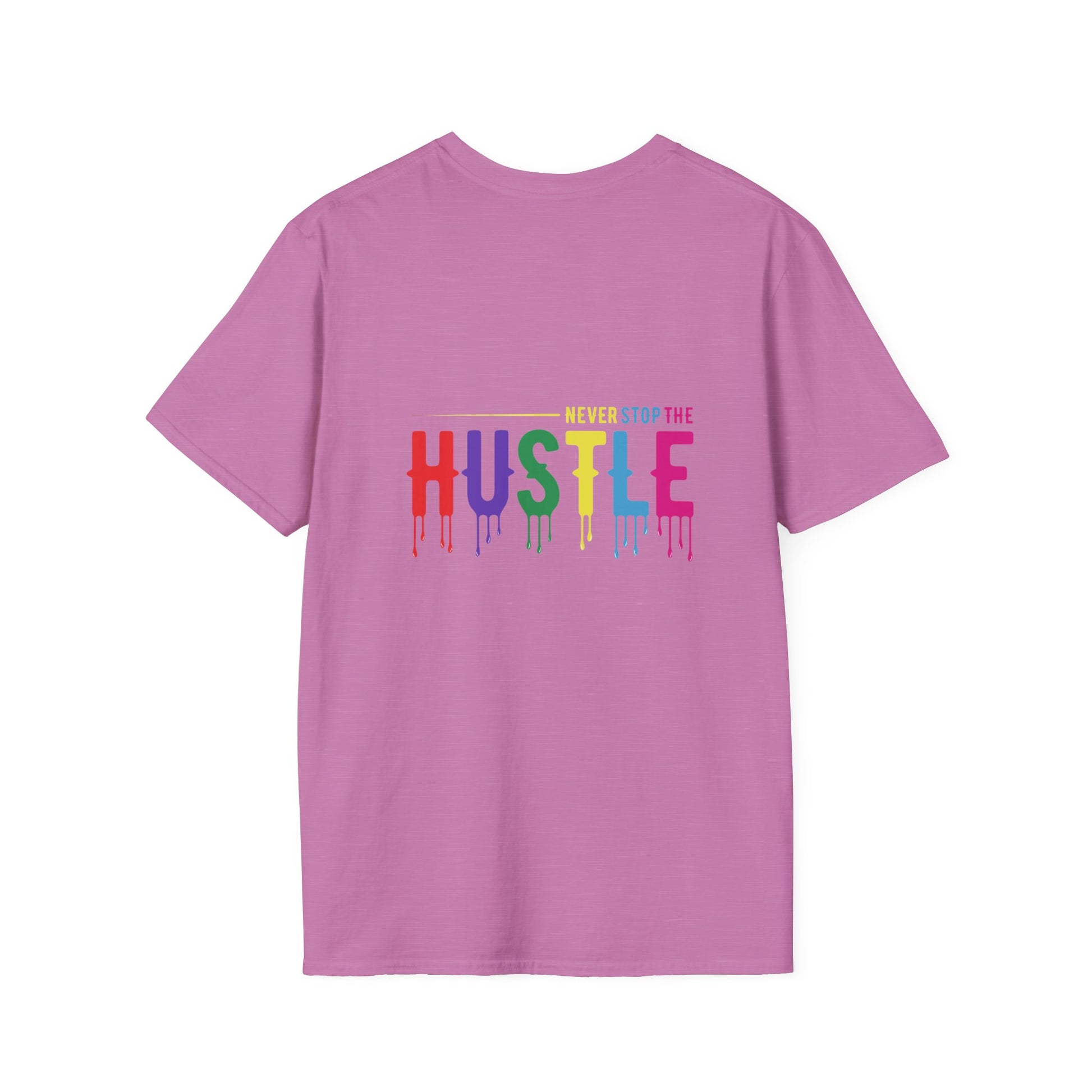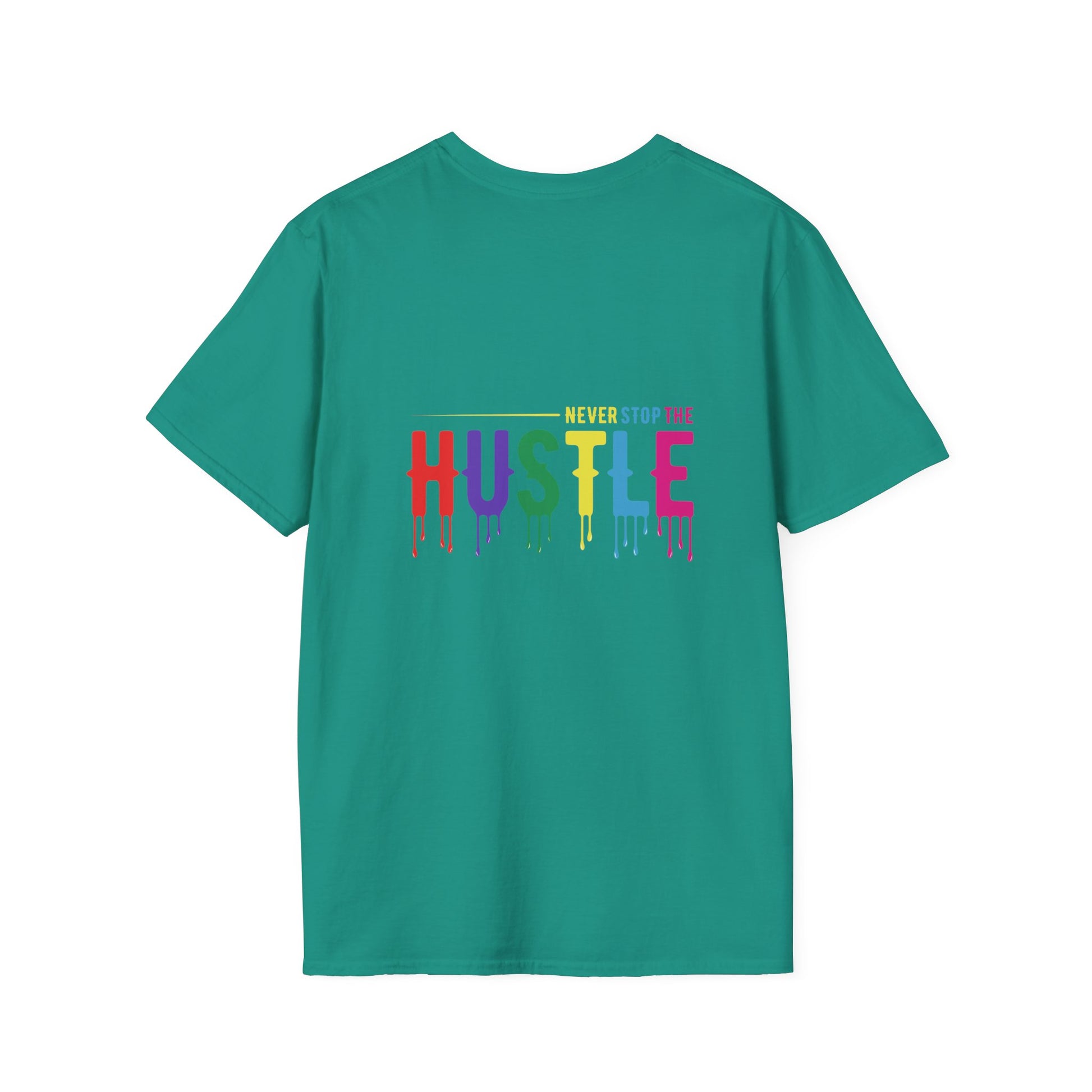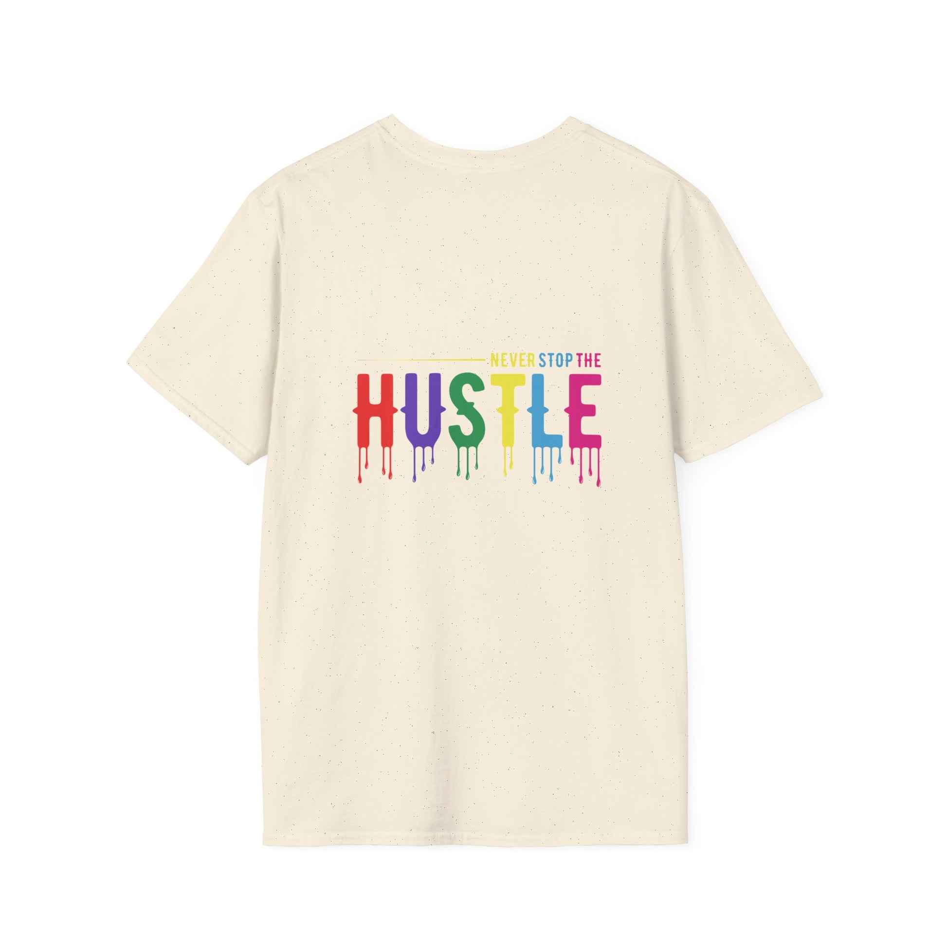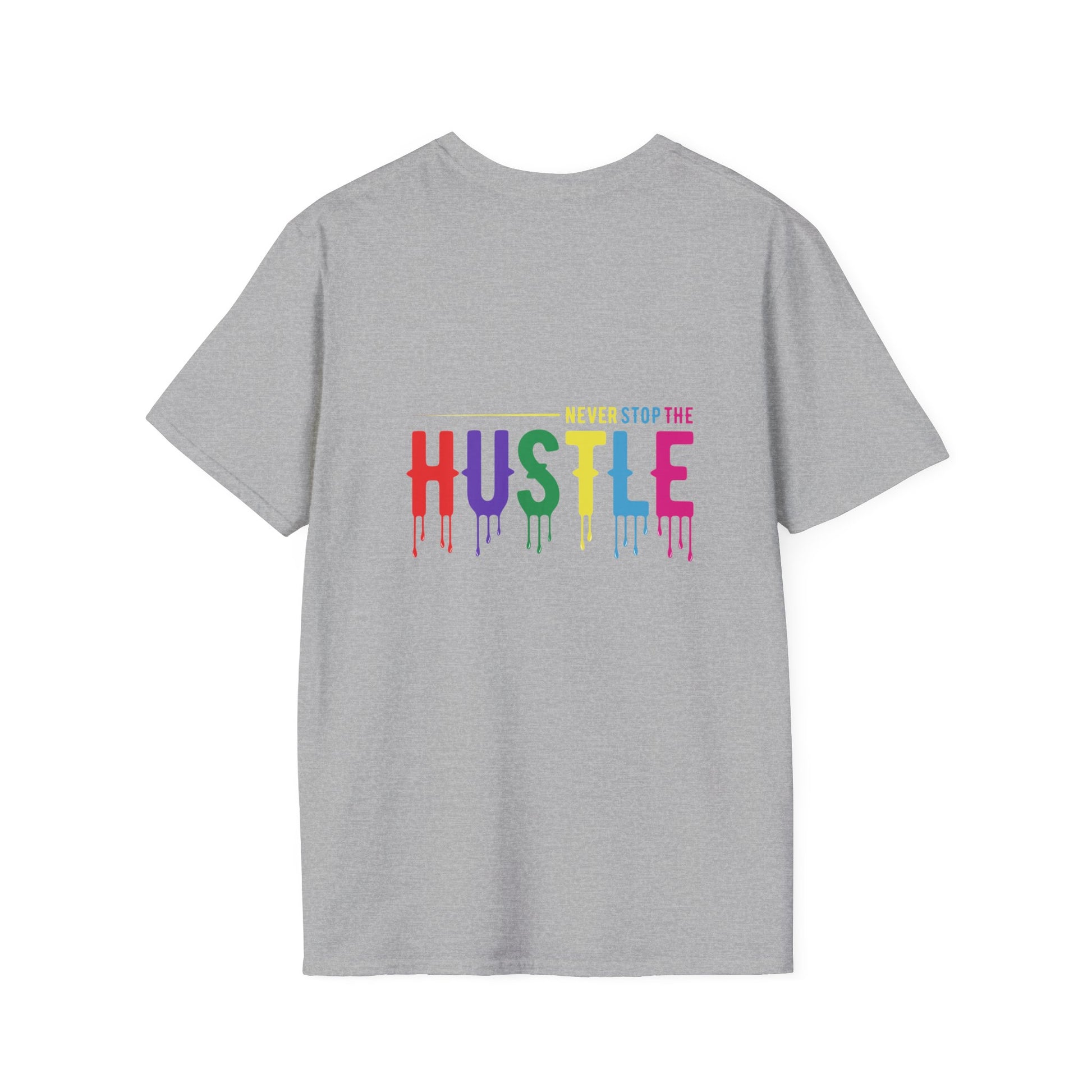 Make a statement with the Colorful Hustle Tee, designed for go-getters who turn their dreams into daily routines. Featuring the bold and uplifting phrase “never stop the HUSTLE,” this vibrant tee brings a burst of motivation to your wardrobe. Whether you're building your brand, running errands, or enjoying a laid-back weekend, this shirt combines comfort with a message that moves you.