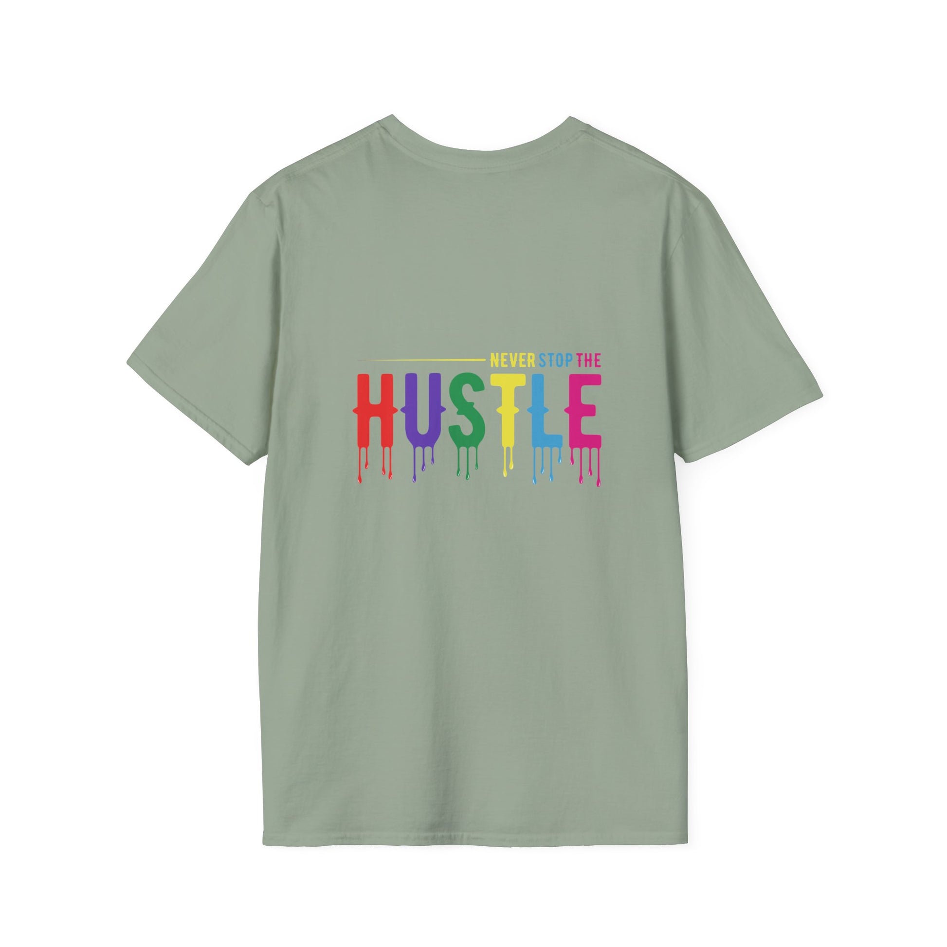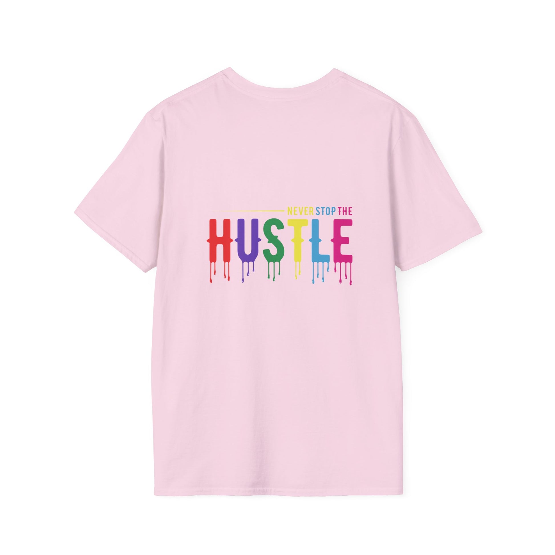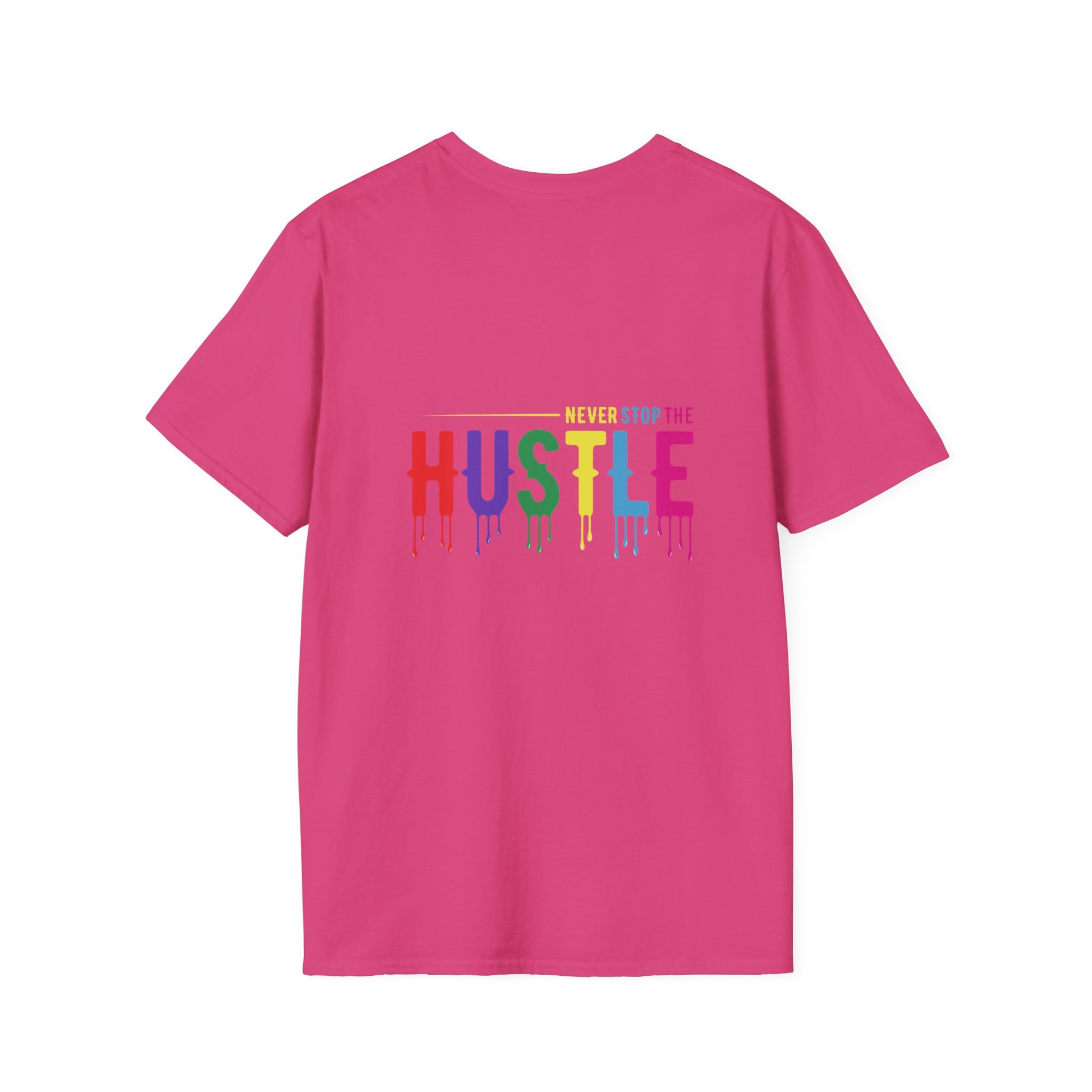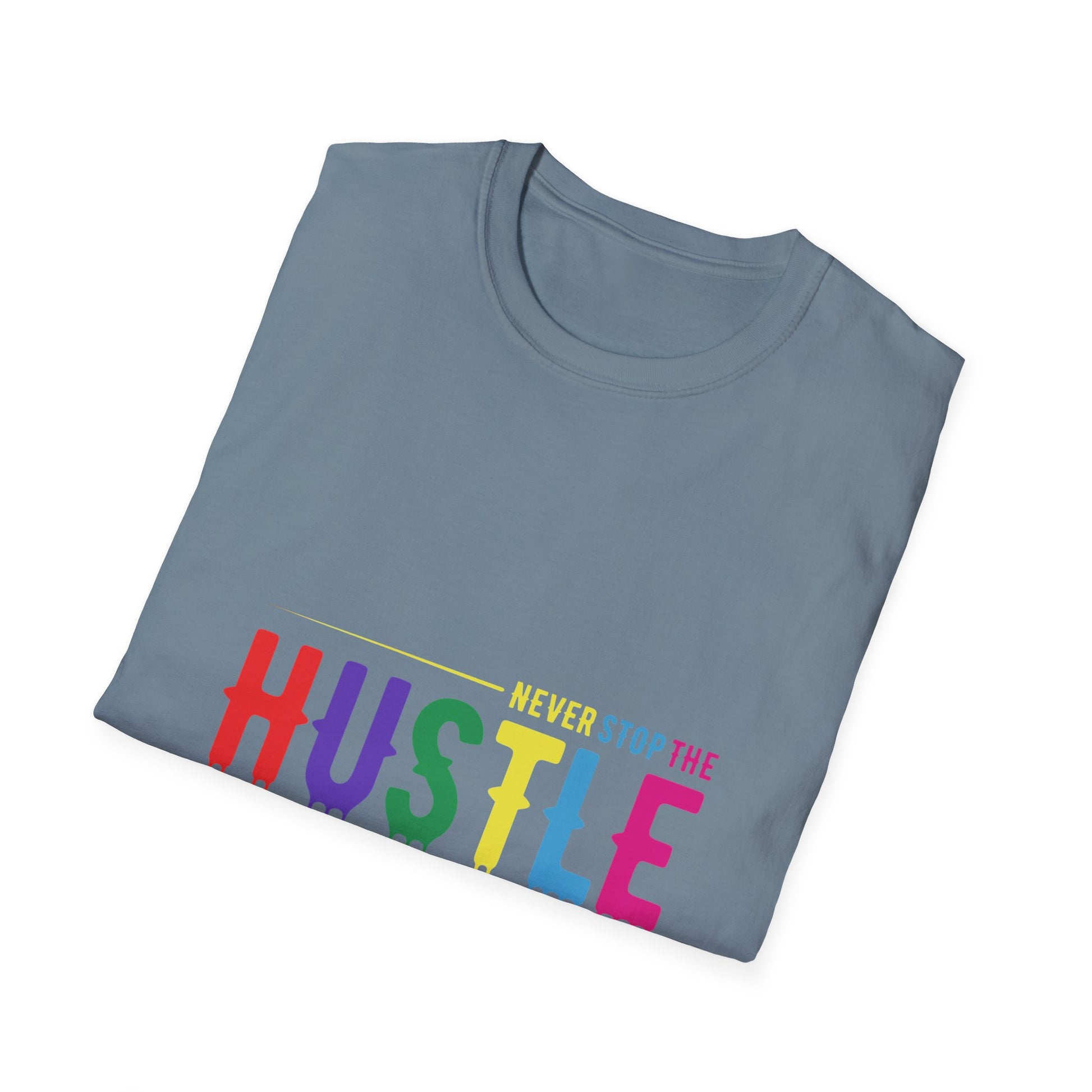 Make a statement with the Colorful Hustle Tee, designed for go-getters who turn their dreams into daily routines. Featuring the bold and uplifting phrase “never stop the HUSTLE,” this vibrant tee brings a burst of motivation to your wardrobe. Whether you're building your brand, running errands, or enjoying a laid-back weekend, this shirt combines comfort with a message that moves you.