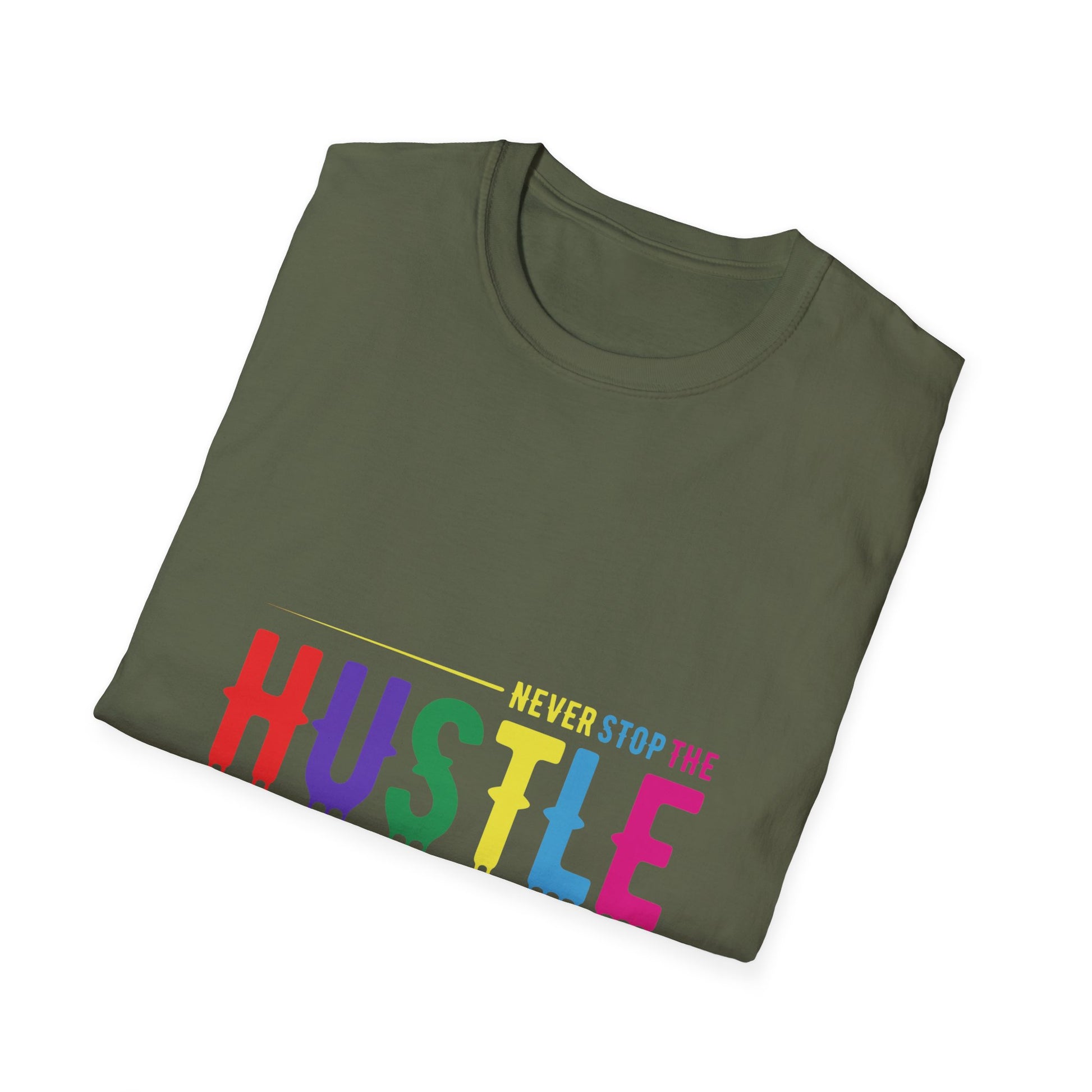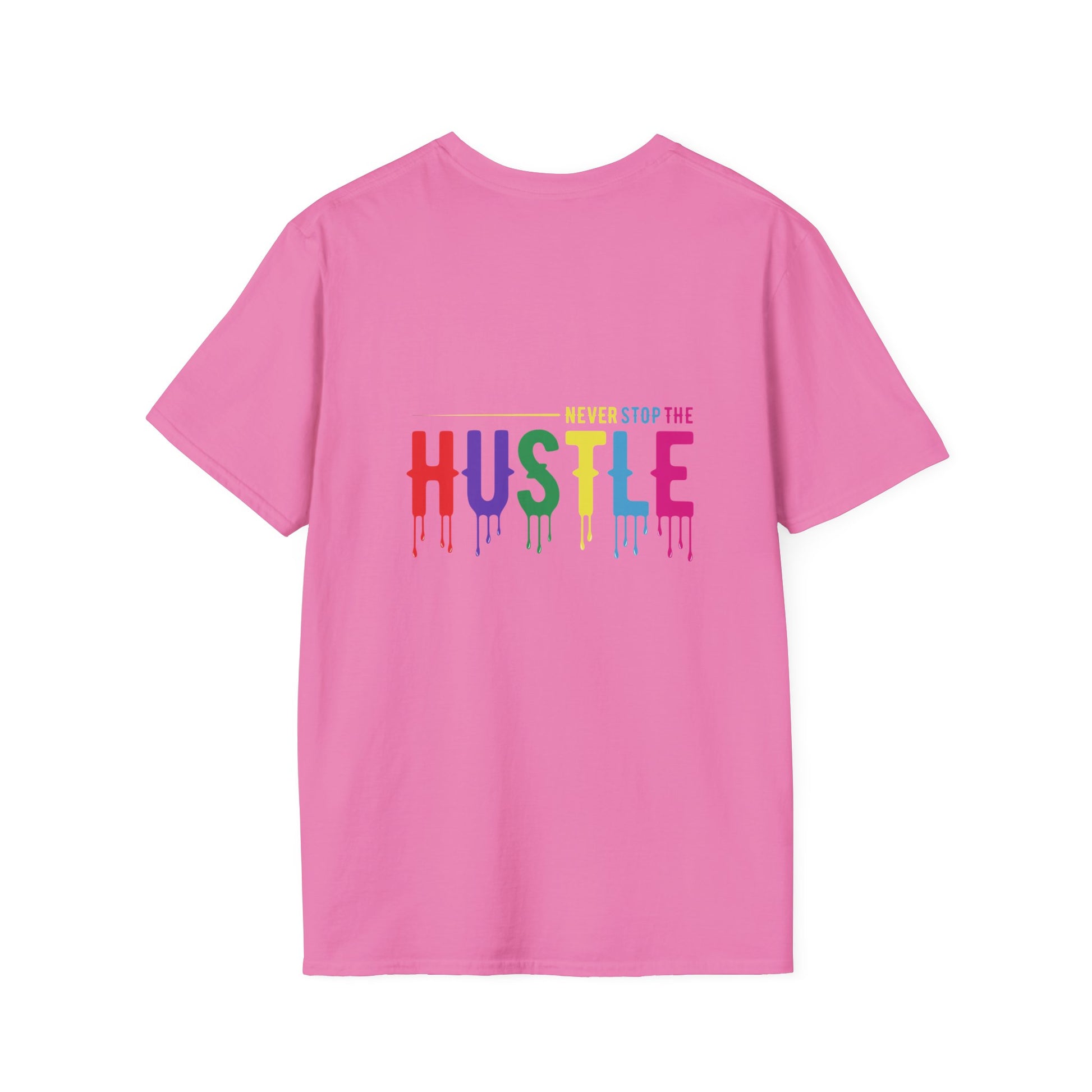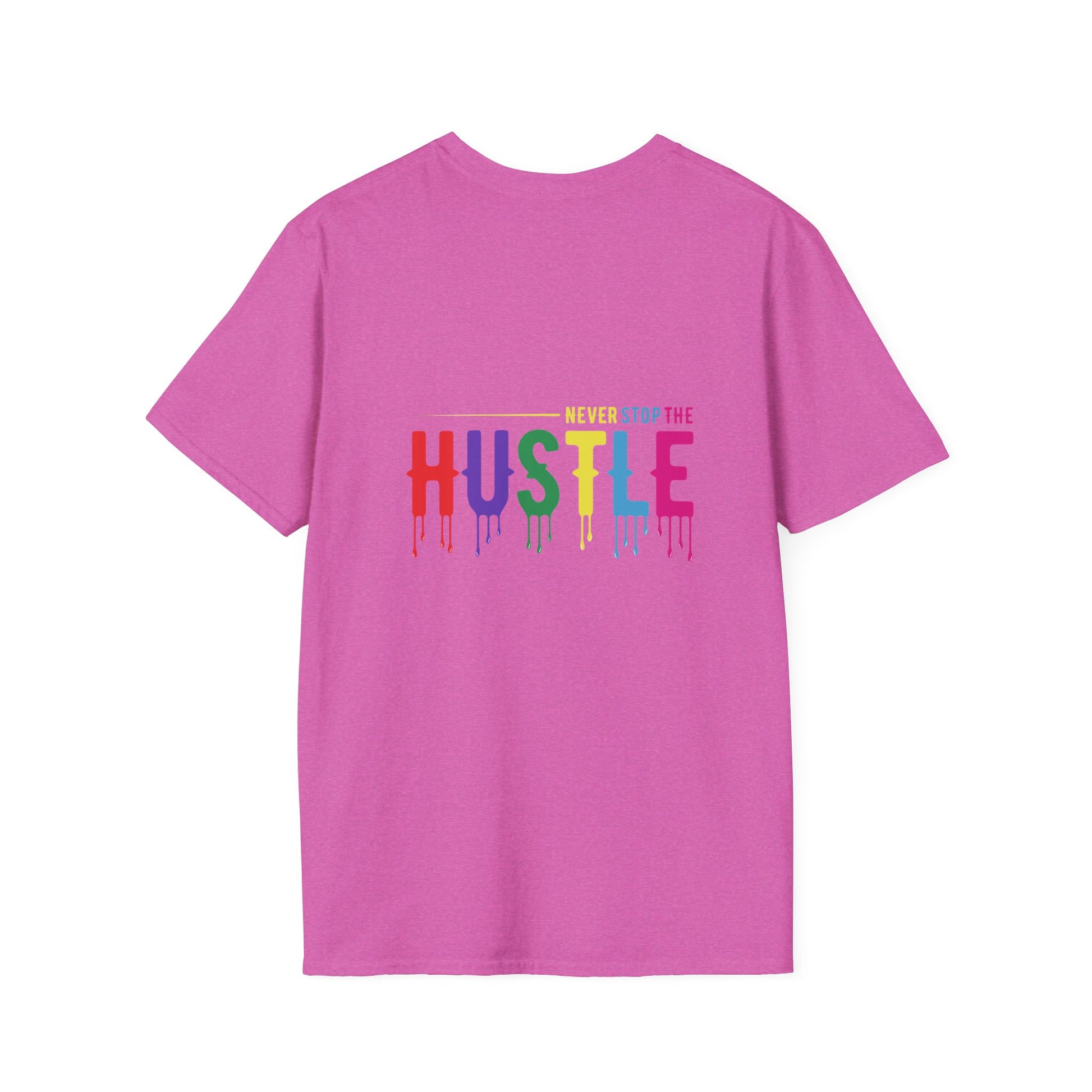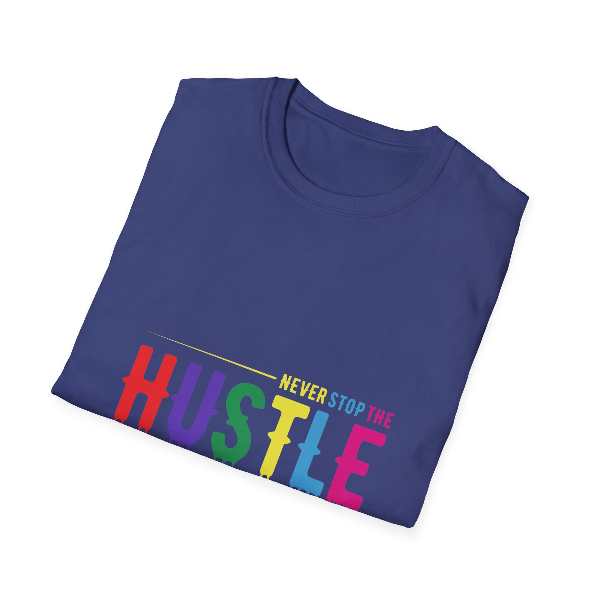 Make a statement with the Colorful Hustle Tee, designed for go-getters who turn their dreams into daily routines. Featuring the bold and uplifting phrase “never stop the HUSTLE,” this vibrant tee brings a burst of motivation to your wardrobe. Whether you're building your brand, running errands, or enjoying a laid-back weekend, this shirt combines comfort with a message that moves you.
