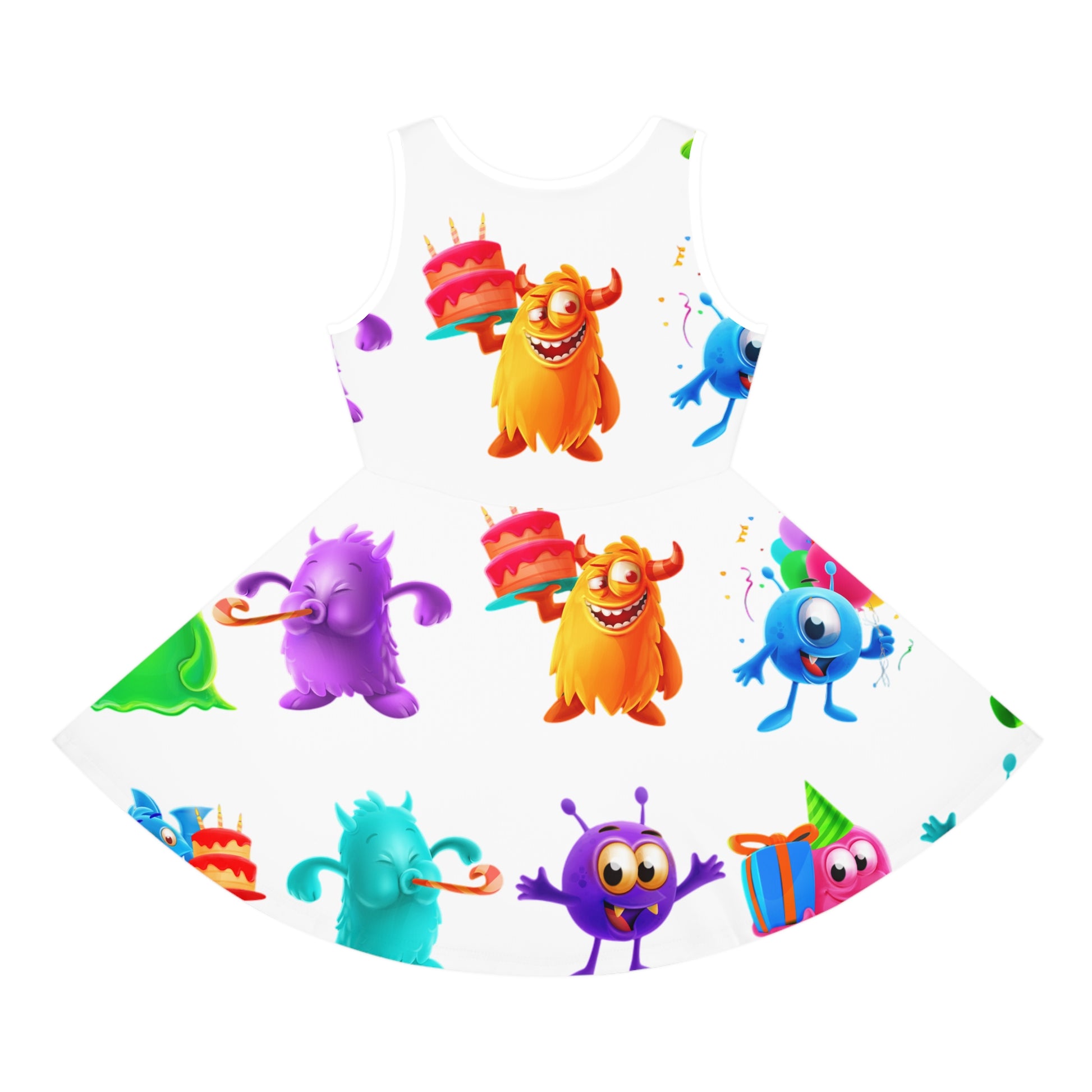 Colorful Monster Print Girls' Sundress | Fun, Whimsical, and Perfect for Summer Adventures