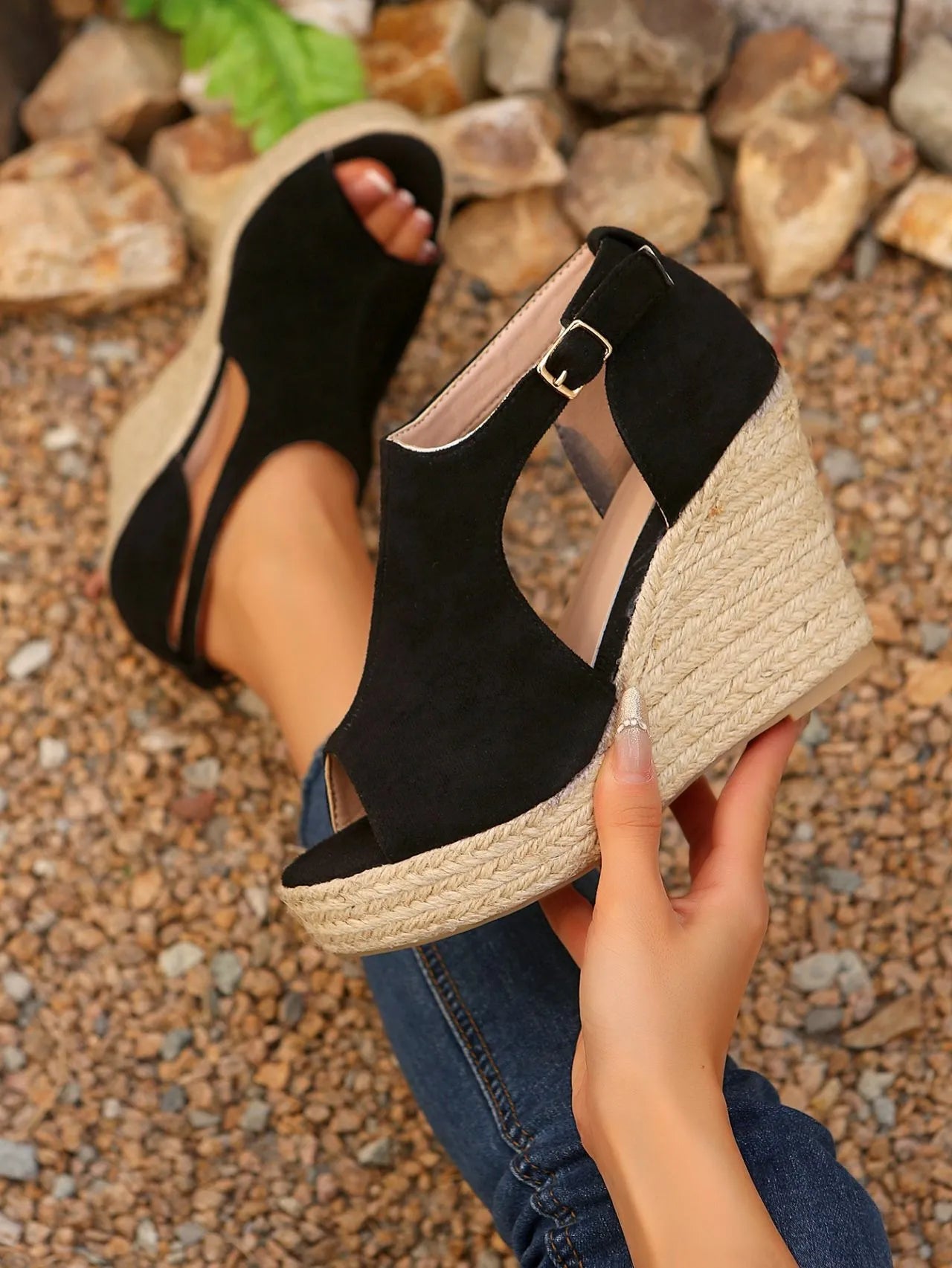 Espadrille Wedge Sandals with Ankle Strap