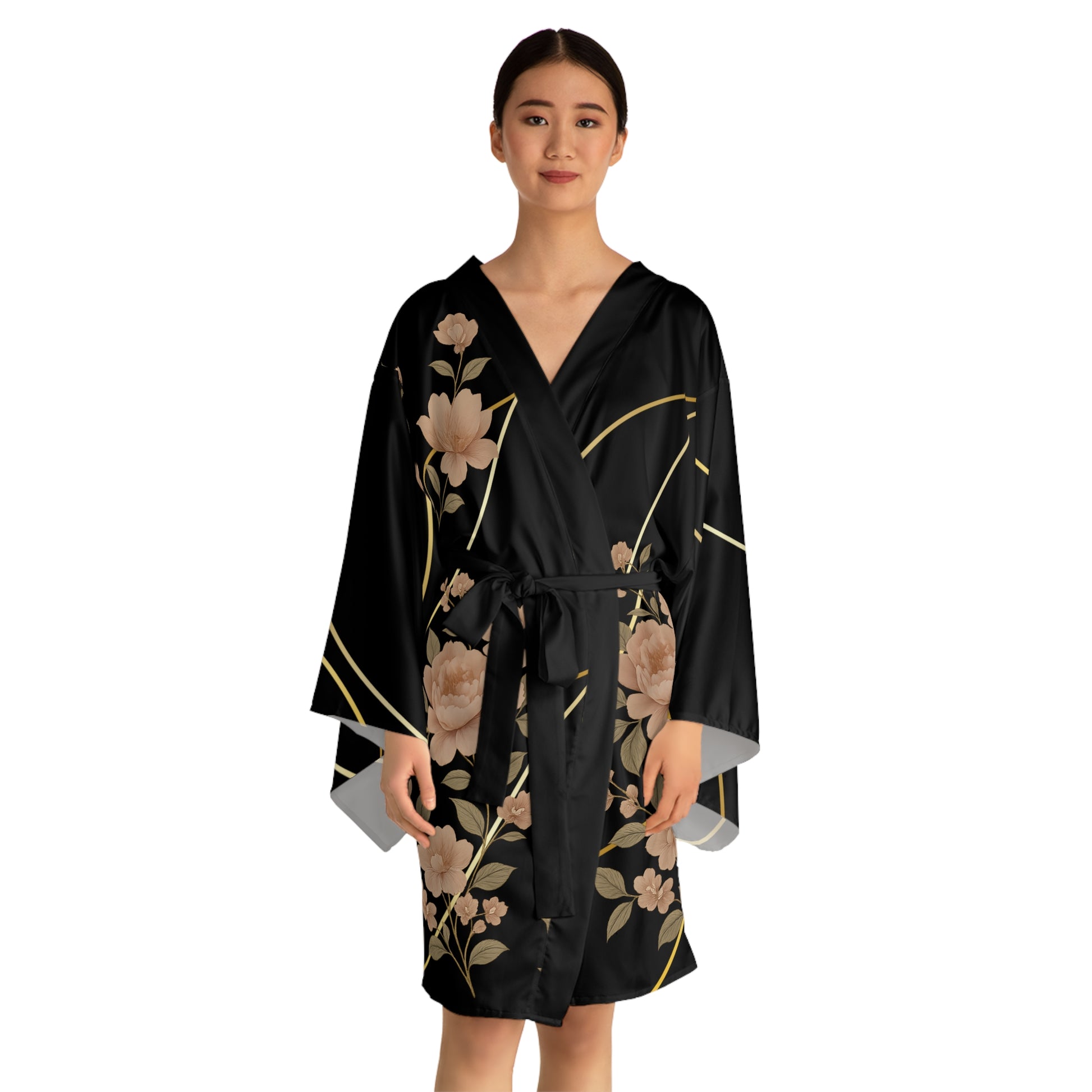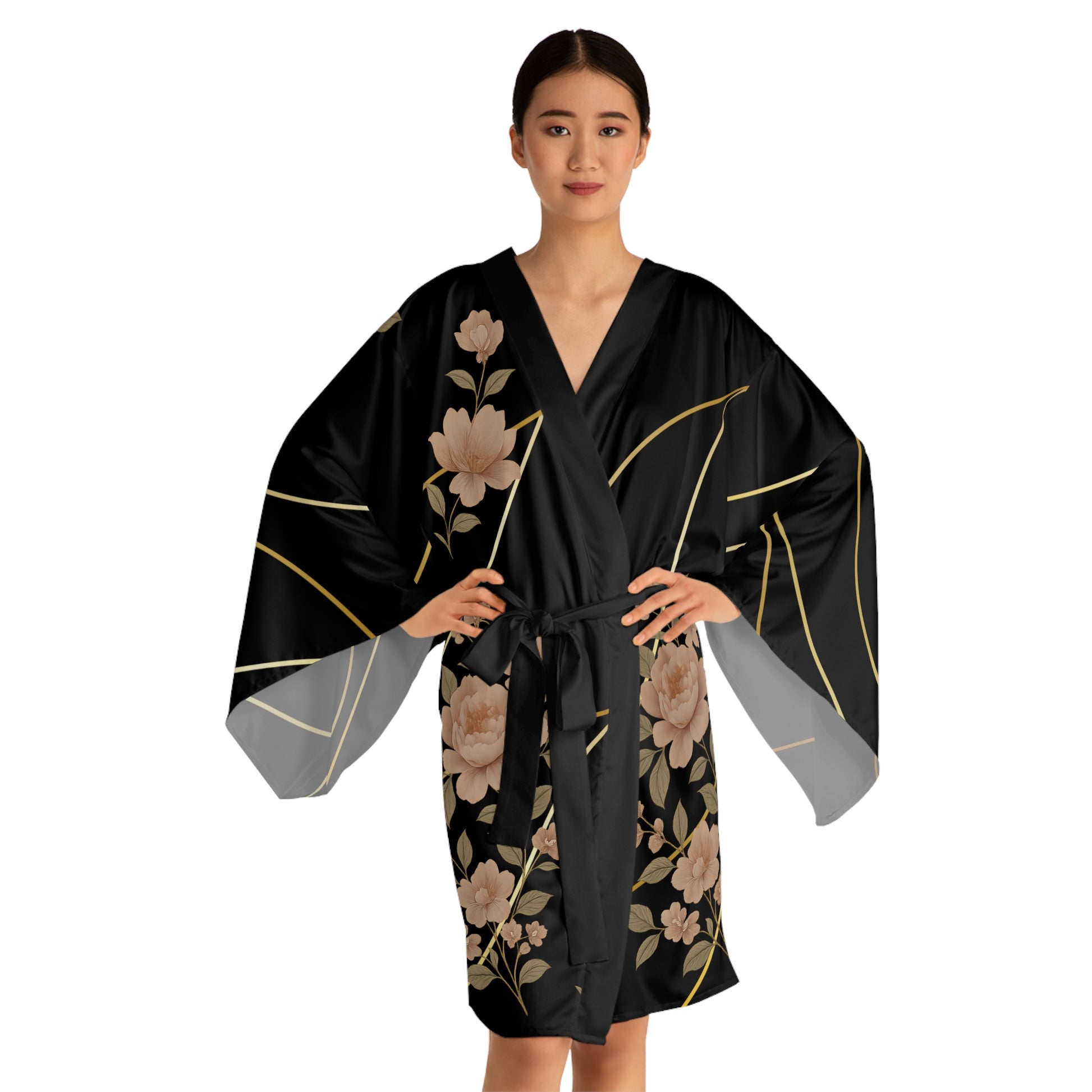 Whether you're enjoying a quiet evening of self-care, stepping out for a casual brunch, or turning heads at a celebration, this kimono delivers comfort without compromising style. The delicate floral design evokes a sense of calm and timeless beauty—ideal for both intimate settings and unforgettable events. It also makes a thoughtful gift for birthdays, holidays, housewarmings, or simply as a luxurious treat for yourself.